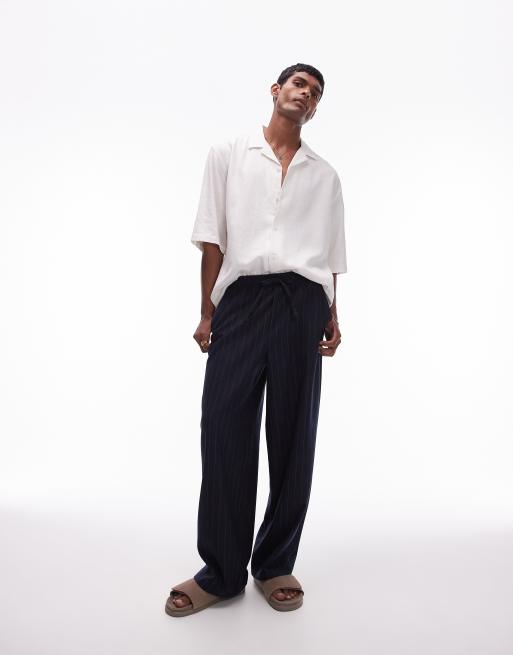 Topman – Weit geschnittene Hose in Marineblau mit Nadelstreifen