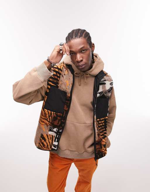 Topman – Weste aus Teddystoff mit durchgängigem Tierfellmuster in Braun