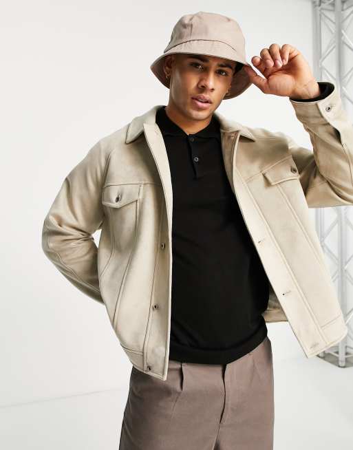 Topman – Westernjacke aus Wildlederimitat in Stein