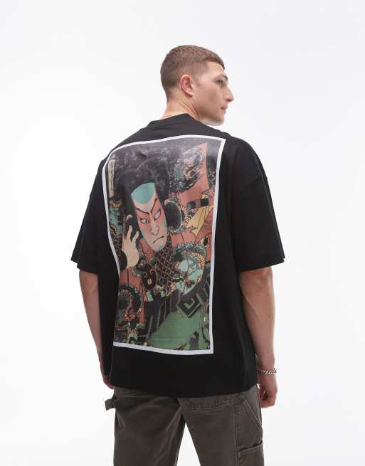 TOPMAN X ASHMOLEAN – Hochwertiges T-Shirt in Schwarz mit extremer Übergröße und Aufnäher mit Samurai-Print