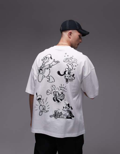 Topman x Disney – Hochwertiges Extrem-Oversize-T-Shirt in Weiß mit Comic-Gang-Print vorn und hinten