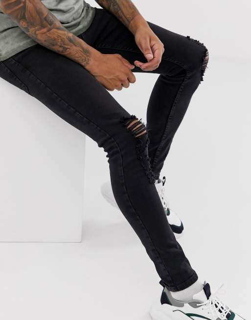 Topman – Zerrissene, hautenge Baumwoll-Jeans in verwaschenem Schwarz