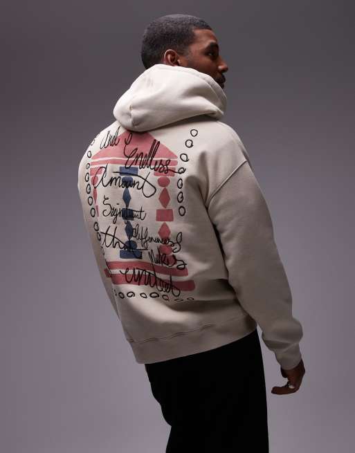 Topshop – Oversize-Kapuzenpullover in verwaschenem Steingrau mit Säulenprint auf Vorder- und Rückseite