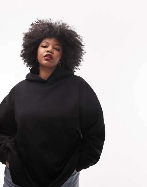 Topshop – Curve – Hochwertiger Oversize-Kapuzenpullover in Schwarz