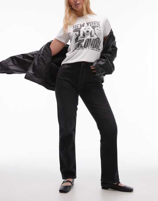 Topshop Hourglass – Kort – Straight Jeans in verwaschenem Schwarz mit hohem Bund