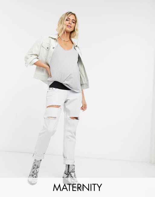Topshop Maternity – Mom-Jeans in starker Bleichwaschung mit Unterbauchbund