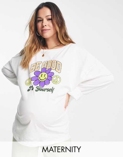 Topshop Maternity – Langärmliges Skater-Shirt in Weiß mit „Be Good“-Print