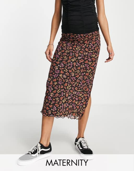 Topshop Maternity – Mehrfarbiger Midirock aus Netzstoff mit Blümchenmuster im Grunge-Stil