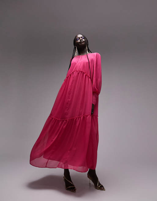 Topshop – Hochwertiges, gestuftes Maxikleid in leuchtendem Rosa zum Überziehen