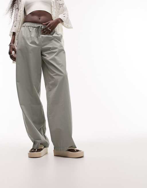 Topshop Tall – Hose in Salbeigrün mit lockerem, geradem Schnitt und Kordelzug in der Taille