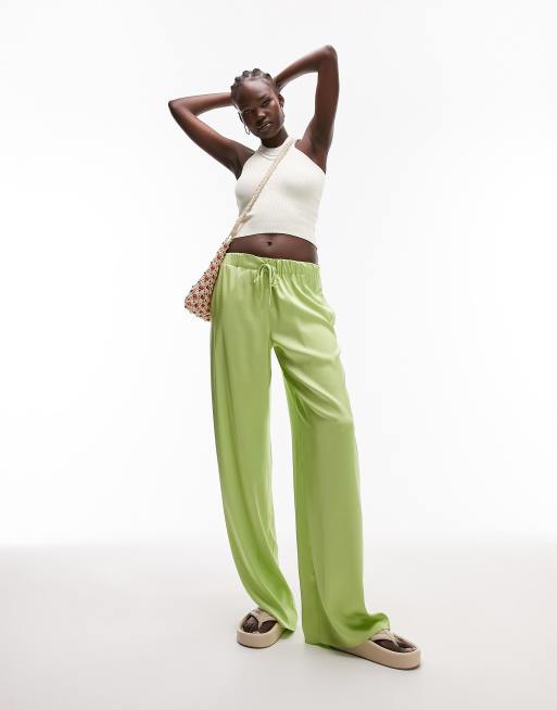 Topshop Tall – Satinhose in Limettengrün mit Kordelzugbund und weitem Schnitt, Kombiteil