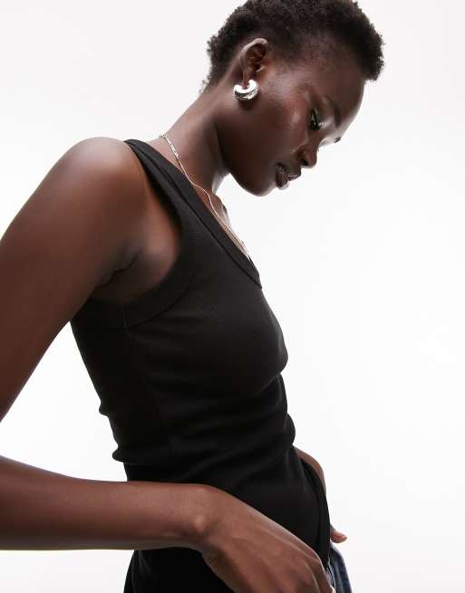 Topshop Tall – Ultimate – Geripptes Trägertop in Schwarz mit langem Schnitt