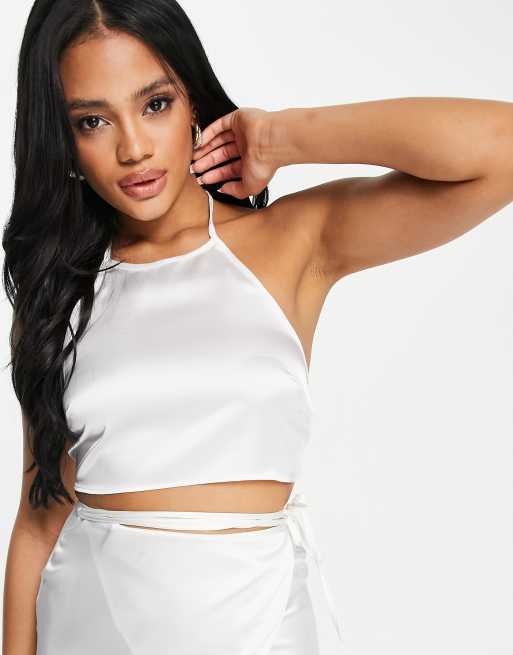 Top – Neckholder-Oberteil aus Satin in Elfenbein, Kombiteil