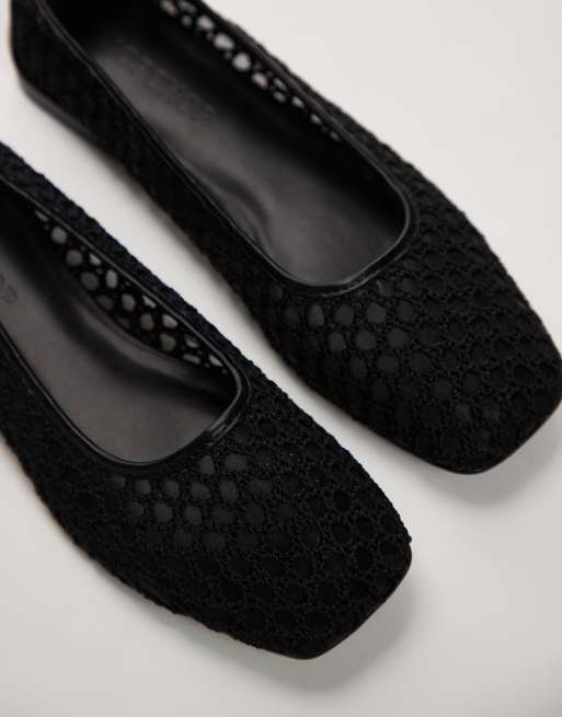 Topshop – Amara – Ballerinas aus Netzstoff in Schwarz mit Häkelmuster