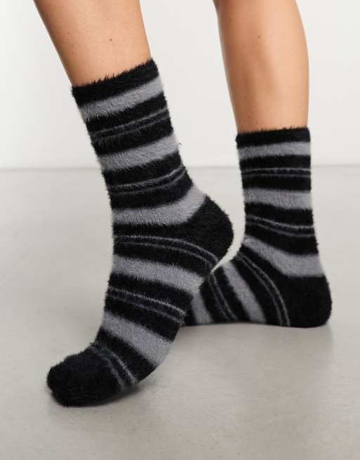 Topshop – Angeraute Socken mit Streifen in Schwarz-Weiß