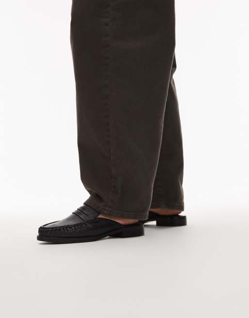 Topshop – Anna – Flache Pantoletten aus Leder in Schwarz