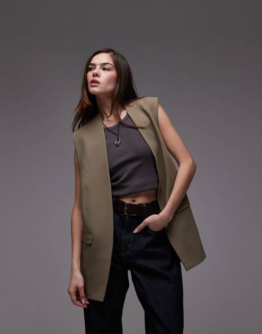 Topshop – Ärmelloser Blazer zum Hineinschlüpfen in Pilzbraun, Kombiteil