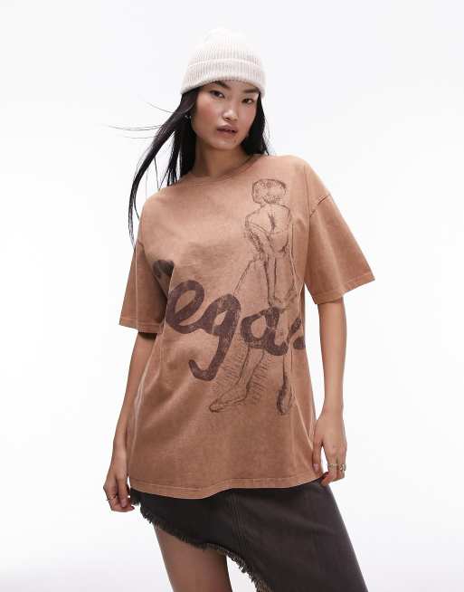 Topshop – Art Museum – Oversize-T-Shirt in Braun mit „Degas“-Grafikprint