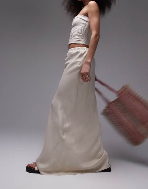 Topshop – Asymmetrischer Maxirock aus Satin in Auster mit Tunnelzug