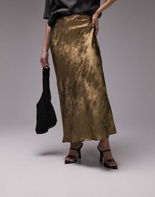 Topshop – Asymmetrischer Midirock in Metallic-Gold