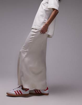 Topshop – Asymmetrischer Satin-Midirock in Perlweiß