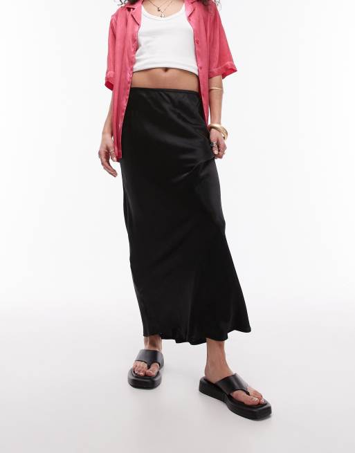 Topshop – Asymmetrischer Satin-Midirock in Schwarz