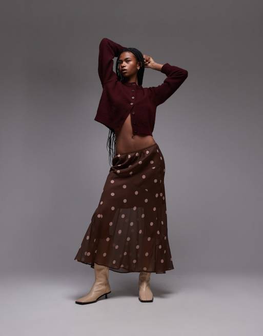 Topshop – Auffällig gepunkteter Chiffon-Rock in Braun