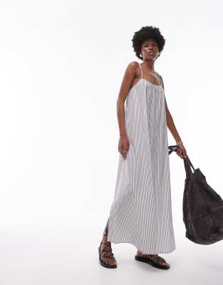Topshop – Ausgestelltes Sommerkleid mit eckigem Ausschnitt, Gummiträgern und blauem Maxi-Streifenmuster