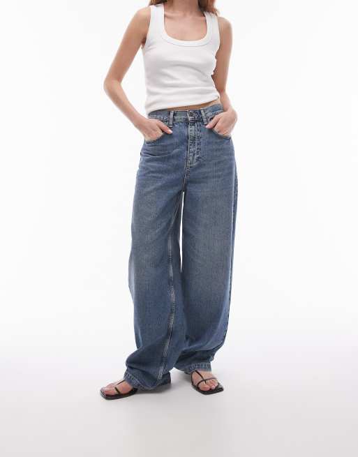 Topshop – Baggy-Jeans in Authentic-Blau mit hohem Bund
