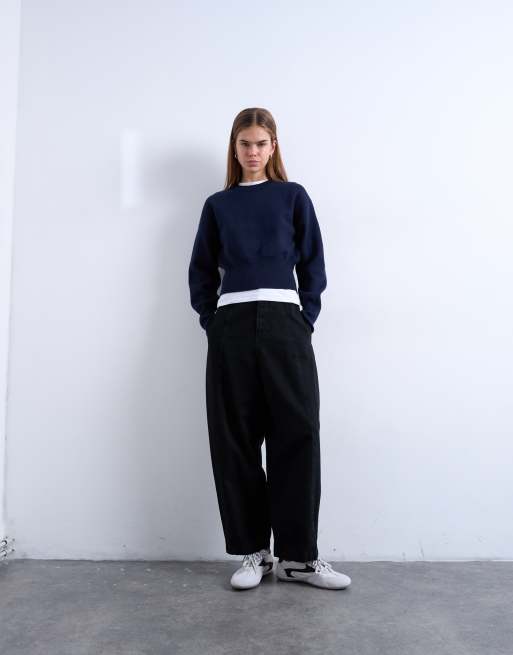 Topshop – Ballonhose aus Twill in Schwarz mit Ziernaht vorne