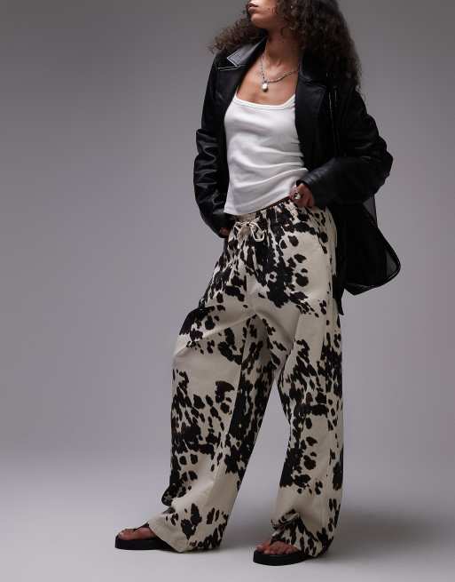 Topshop – Balloon Fit Hose aus Leinen mit Kuhfellmuster