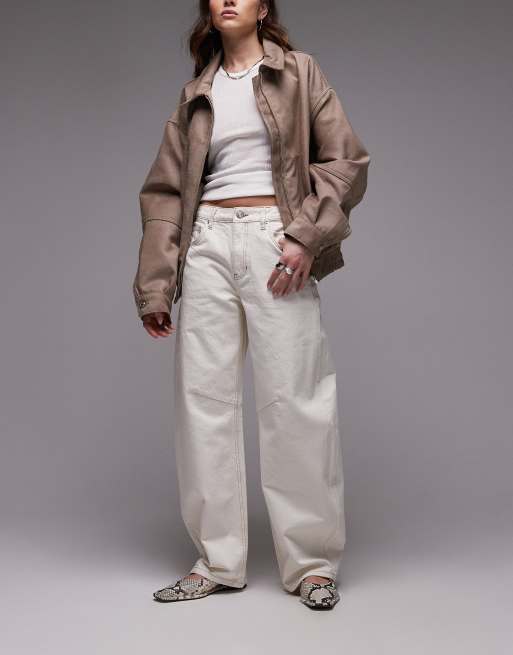 Topshop – Barrel-Leg-Jeans mit weitem Bein in Wollweiß