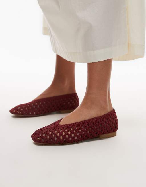 Topshop – Beatti – Flache, gewebte Schuhe in Rot