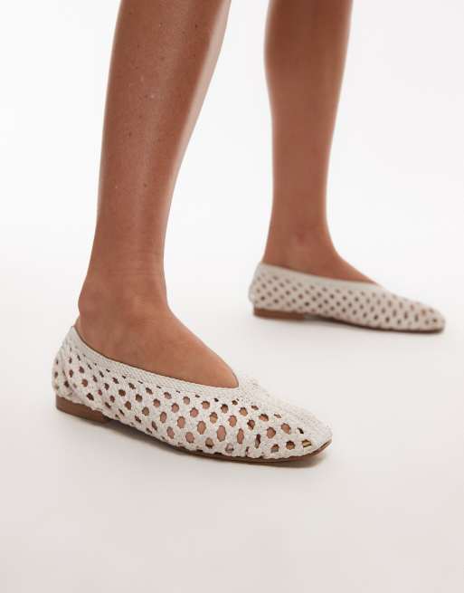 Topshop – Beatti – Flache, gewebte Schuhe in Wollweiß