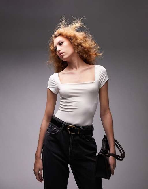 Topshop – Body in Elfenbein mit Flügelärmeln