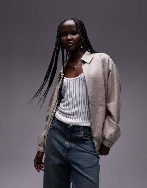 Topshop – Bomberjacke aus Leinen in Steinbeige