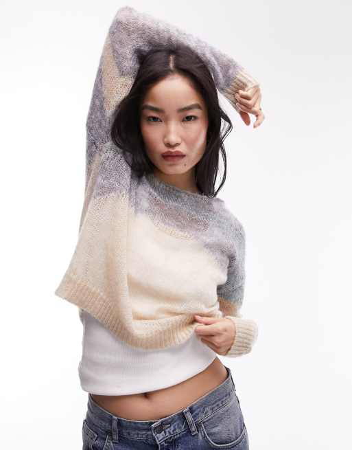 Topshop – Bunter, transparenter Strickpullover mit abstraktem Muster