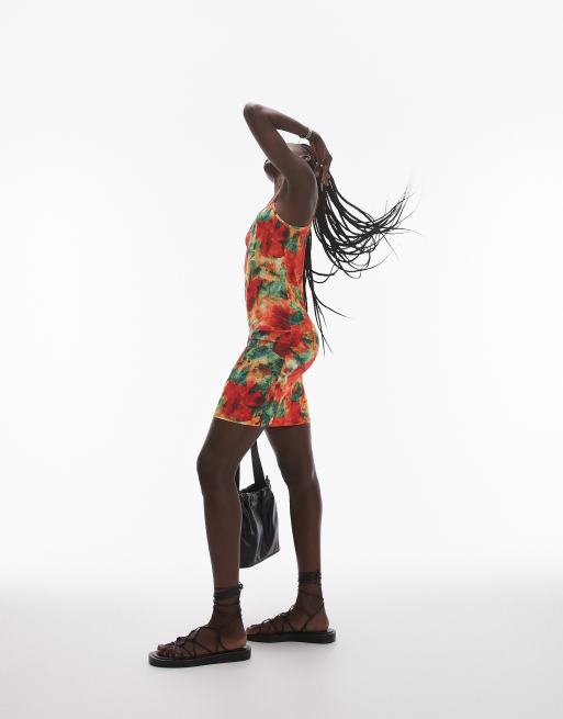 Topshop – Buntes Minikleid mit eckigem Ausschnitt und leuchtendem Blumenmuster
