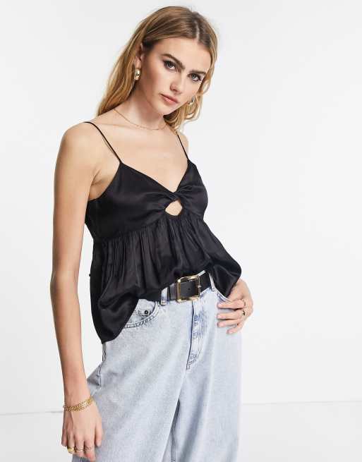 Topshop – Camisole aus Satin in Schwarz mit verdrehtem Detail