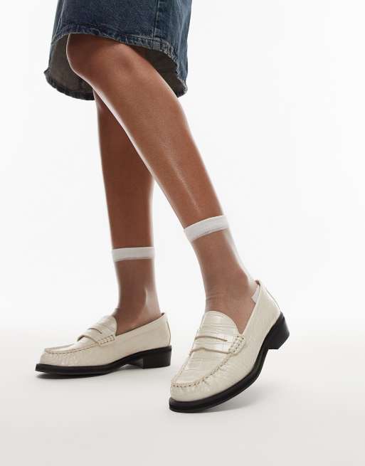 Topshop – Carter – Loafer in Wollweiß mit Kroko-Print und gerafftem Detail