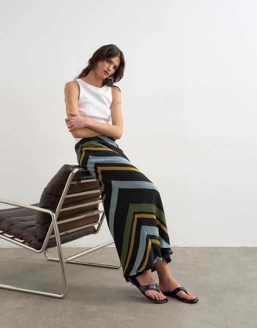 Topshop – Chiffon-Maxirock mit Schrägschnitt und plakativem Streifenmuster