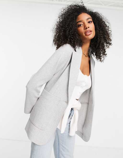 Topshop – Einreihiger Jersey-Blazer aus Twill in Hellgrau