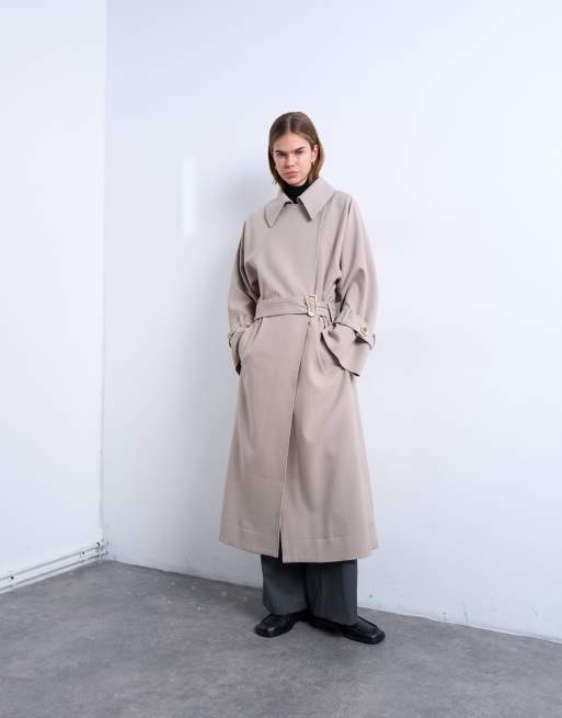 Topshop – Eleganter, schlichter Oversize-Trenchcoat mit tiefem Armausschnitt in Stein
