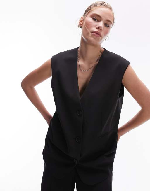 Topshop – Figurbetonte Oversize-Weste in Schwarz