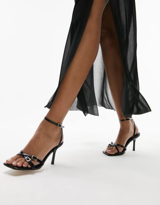 Topshop – Frankie – Riemchen-Sandaletten in schwarzer Eidechsenleder-Optik mit Schnallendetail