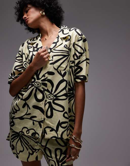 Topshop – Freizeithemd in Gelb mit Blumenprint, Kombiteil