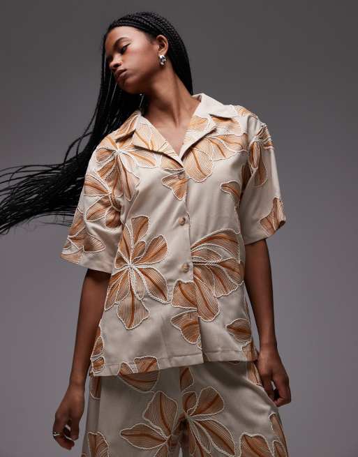 Topshop – Freizeithemd in Natur mit floraler Ziernaht, Kombiteil