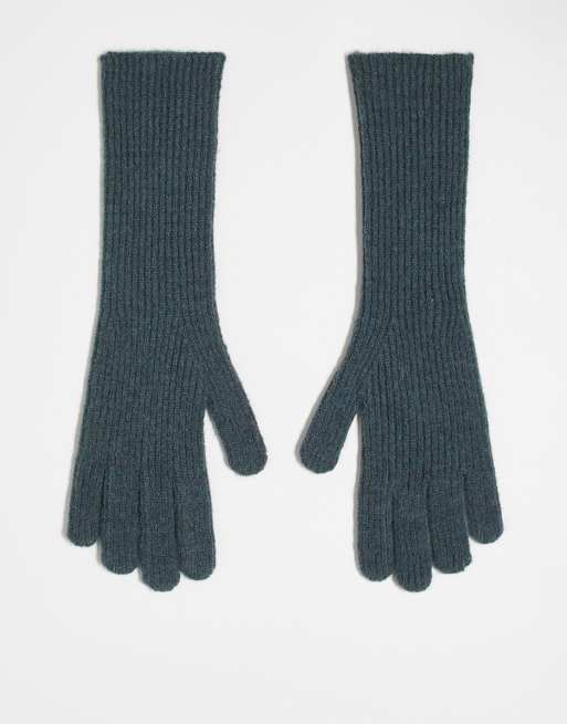 Topshop – Gabriella – Gerippte, lange Handschuhe in meliertem Grau