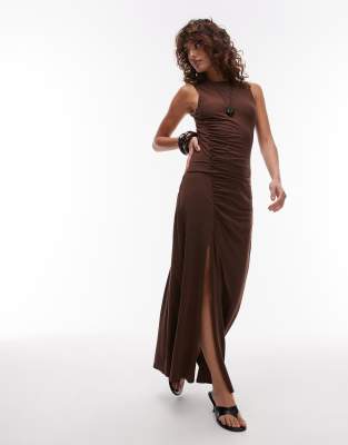 Topshop – Gerafftes Maxikleid in Schokobraun