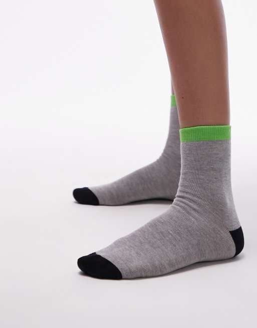 Topshop – Gerippte Socken mit Farbblockdesign in Grau und Grün